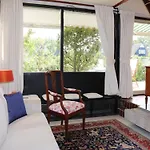 تتمتع الشرفة هنا بإطلالات على الحديقة. تشتمل مرافق الحمام أيضًا على المرحاض المنفصل والدوش. يمكن للضيوف أيضًا الاستمتاع بملاءات الحمام والمناشف.